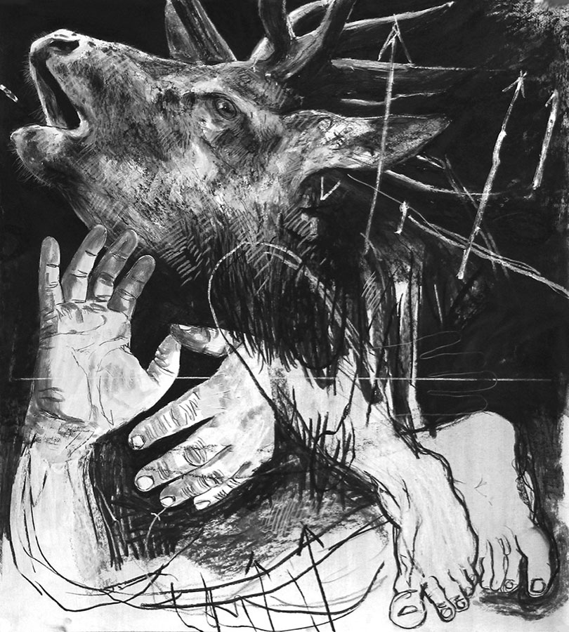 Technique : fusain, pierre noire et Gesso sur papier